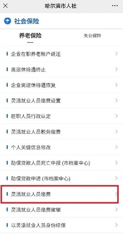 (三)在业务列表中点击“灵活就业人员缴费”。
