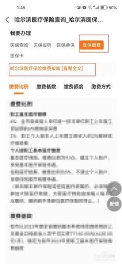 第三步:在出现的页面中点击【医保缴费】,然后点击【哈尔滨医疗保险缴费指南】
