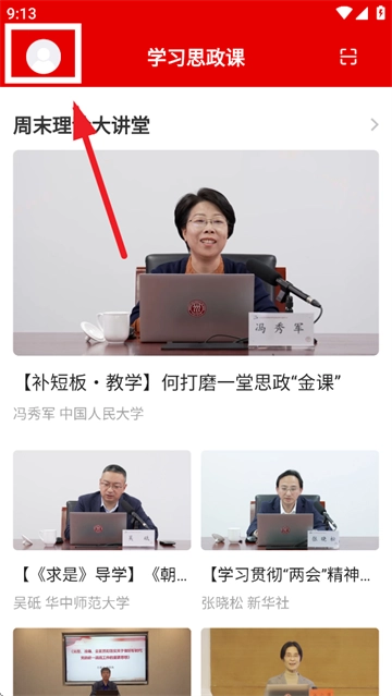 安装并打开学习思政课,进入后点击左上角头像按钮