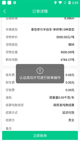 5、需留意,唯有认证成功之后,方可开展抢单操作。