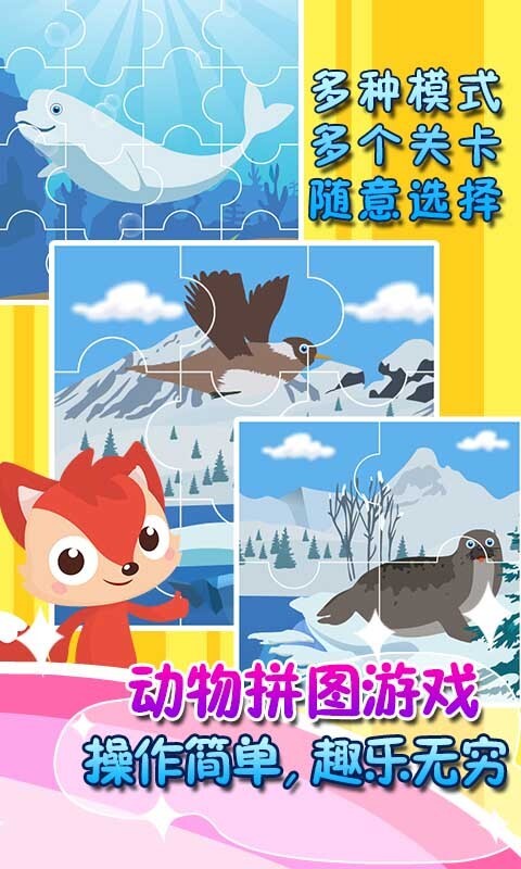 这款软件以恐龙为核心主题,设置了不同难度的玩法:操作简单的拖拖乐、趣味十足的恐龙化石拼图,以及锻炼思维能力的七巧板拼图。
