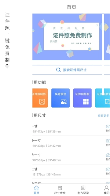 一款实实在在免费的证件照制作工具,良心承诺,完全免费无套路!这里提供丰富多样的证件照尺寸规格,无论是常规尺寸,还是学历考试、公务员考试、医疗卫生、财务会计、职业资格、旅游签证、建筑工程等特定场景所需尺寸,统统都有。不仅如此,还支持自定义尺寸,大小随您心意设定。更有一键 AI 换背景功能,千万种颜色任您挑选。同时,证件照一键智能排版,方便又快捷,通过尺寸裁切,一张证件照就能满足所有尺寸需求。