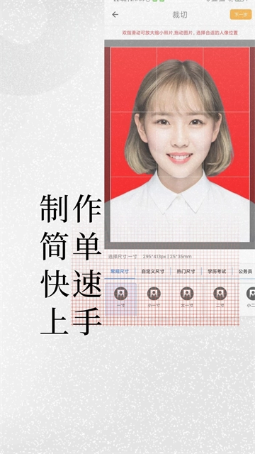 3、提供多种证件照尺寸规格,常规尺寸、学历考试等;