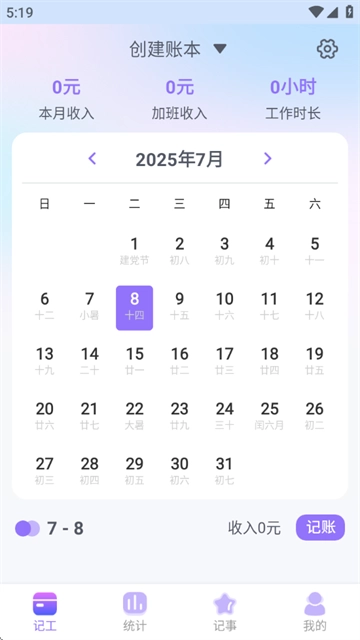 让您随手记工资天天记加班记录,还能自动生成加班日历。