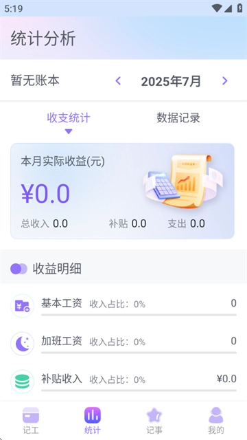 3、随时可进行加班统计和收入统计,工资款项一目了然;