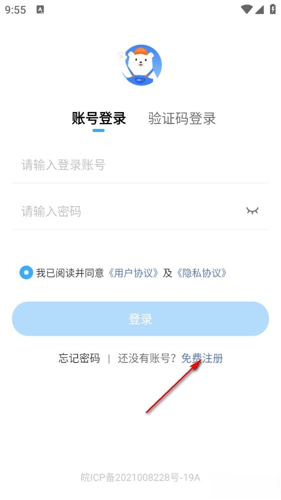 3、注册完成后自定返回点击登录