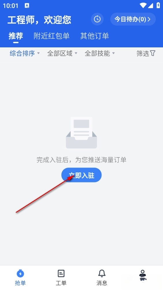4、进入软件后点击中间的立即入驻
