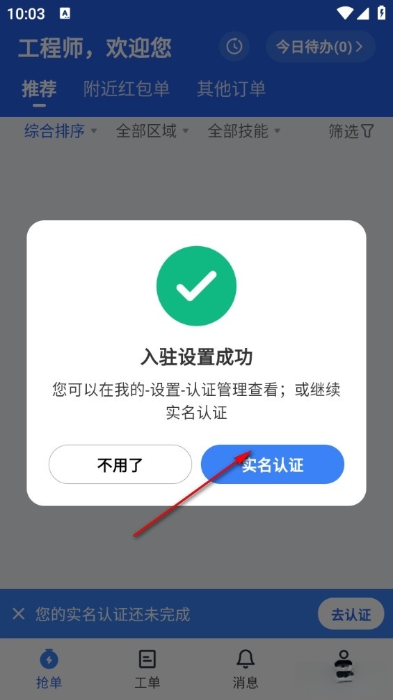 6、完成后跳出实名认证界面,填写认证就可以接单了