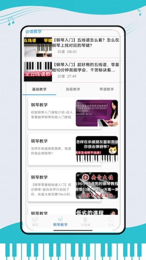 2、进入钢琴教学界面学习乐理,包含识谱入门、演奏技巧、名曲解析等阶梯式课程。