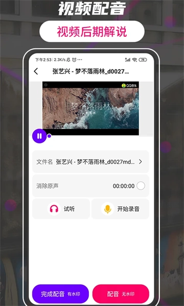 2. 视频配音:视频后期配音,创作有个性的视频作品;