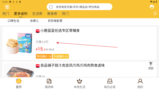 1、点【更多返利】,查看返利商品列表,选心仪商品,可享购物返利。