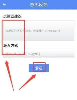 4. 打开意见反馈窗口,在相应位置填写反馈或建议内容以及联系方式,随后点击【发送】按钮,就能完成意见反馈。