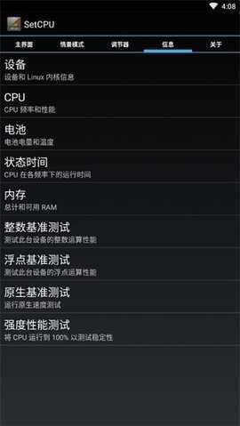 SetCPU中文版作为一款手机CPU频率调节工具,可助力用户手动调控处理器的运行频率。借助对CPU最高与最低频率的调整,用户能够在提升游戏性能和延长电池续航这两者间灵活抉择,达成对设备功耗与性能的精细化管理。