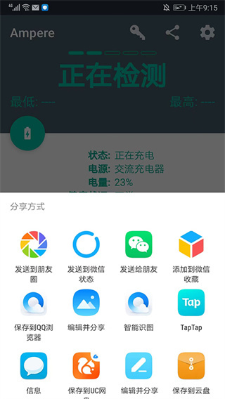 5、随后我们断开电源,点击右上方的【分享】图标,就能通过不同方式分享当前设备的电池数据。