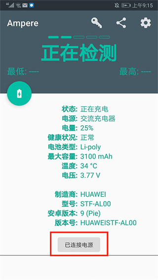 3随后我们开启电源,此时能观察到当前电源的类别、充电功率、剩余电量以及电池的最小和最大容量等相关信息。