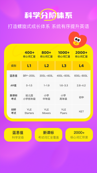 1、平台严选全球优质英语启蒙资源,包含小猪佩奇、汪汪队立大功等正版授权动画内容,借助分级体系精准契合不同年龄段的学习需求。