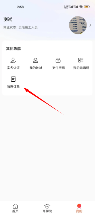 2、进入“我的”界面后,点击图中所示的对应图标,即可查看自己过往购买的订单记录。