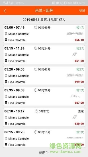 免出票费、订座费及附加费,电子票支持直接扫码验票,无需额外换票;提供免费的中文微信服务协助办理Check in,覆盖意大利国铁Trenitalia与私铁Italo(法拉利火车)的全部车型与时刻,可按早到晚、价位升序等方式查询,快速在线查看行程详情。
