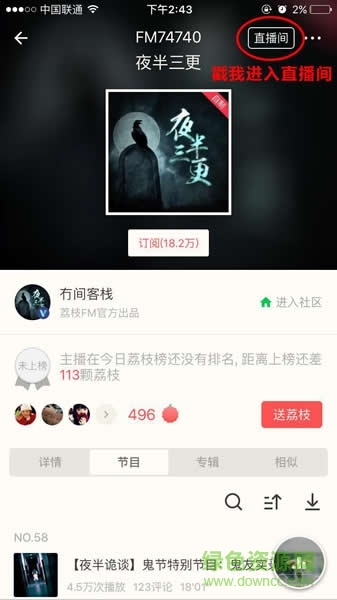 可以!只要你心爱的主播开通了直播功能,你就可以通过他的播客页面进入直播间。订阅后还能收到即时的直播通知。