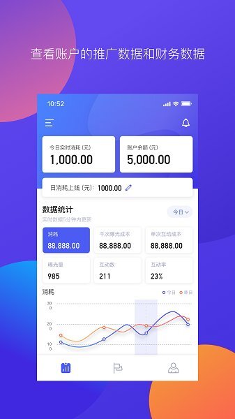 可随时查看推广及财务相关数据,支持快捷调整日额度,还能实现多账户登录状态的自由切换。