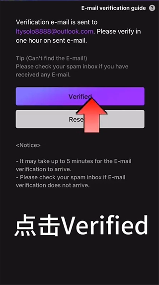 7、点击“verify”,发送邮件验证