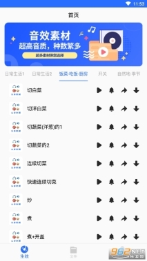 3、包含了吃饭、开关、季节等类型音效,用户还可以自由制作音效,随时播放音效,可以一键、分享。