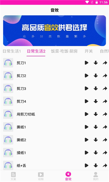 5. 一键获取,免费畅享!视频、图片、文案、音效,以及众多免费素材,直接使用,快来体验!