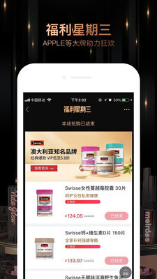 2每周三都会有福利活动,届时众多大牌会进行福利放送,活动精选澳新地区的健康、美妆、母婴品牌,且这些品牌均为直接供货。