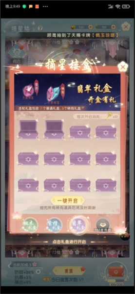 翡翠礼盒(紫)开启掉落:星辰结晶,星辰原石。