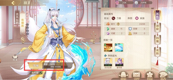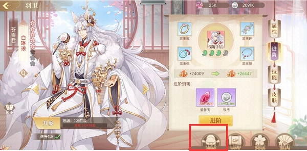 消耗装备玉和银币可以给羽卫进行进阶,可以提升战斗力哦~