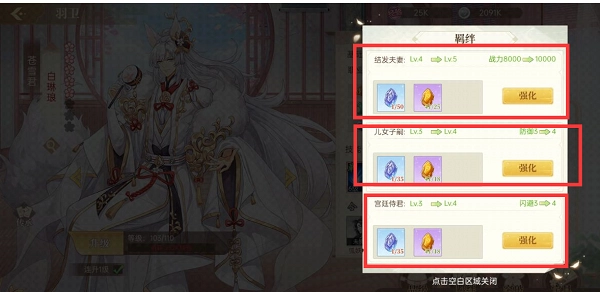 给羽卫激活并提升羁绊可以提升羽卫的战力和四维(防御和闪避)