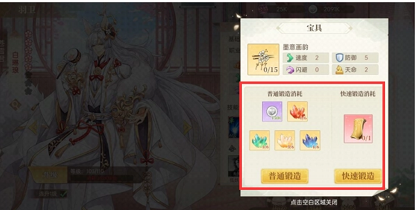 宝具开启后,可以消耗魂晶和银币锻造宝具。