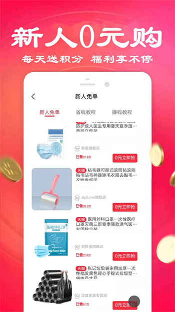 5.新人刚注册之后还拥有新人免单的活动,0元就能够抢购不同的商品。