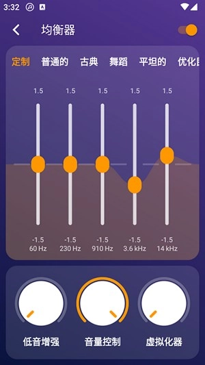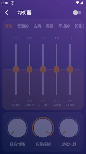 2、支持均衡器和低音增加功能,提升用户的音乐播放体验