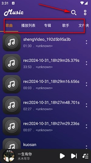 1、一打开便能看到各类本地音乐播放列表。