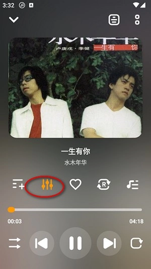 3、接着点开播放页面,可以设置播放模式,点如图按钮可设置均衡器。