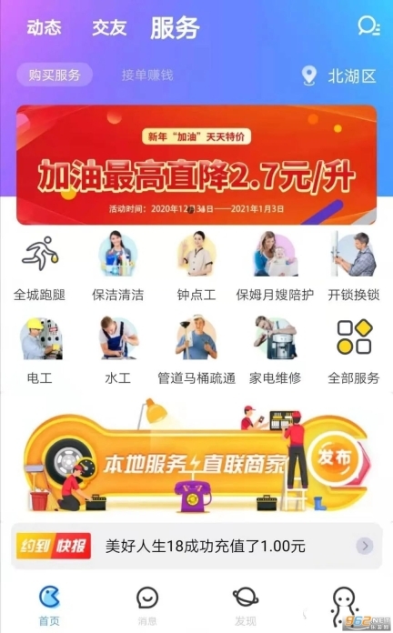 能让用户获取本地餐饮、住宿、旅行等消费折扣;还可查看周边用户、实时动态、本地社群、线下活动及社交分享,拓展同城人脉;同时提供家政、维修、代办等生活服务