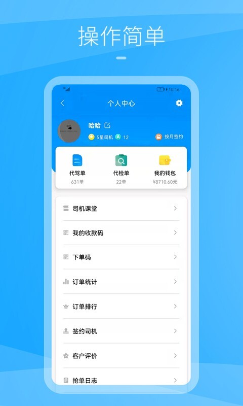 这是一款为代驾司机打造的移动应用程序,它能够与乘客端无缝对接,让司机师傅们通过为平台用户提供代驾服务来获取收入。该应用界面设计人性化,功能模块丰富,致力于提升司机的接单效率与工作体验。平台提供了多种类型的订单供司机自主选择,收费与账户管理体系公开透明,旨在为用户创造便捷可靠的出行服务。