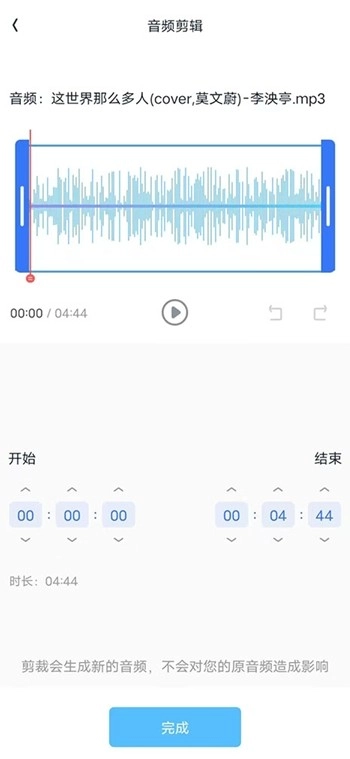 4、还可以进行音频的剪辑,剪辑好以后点击下方的完成