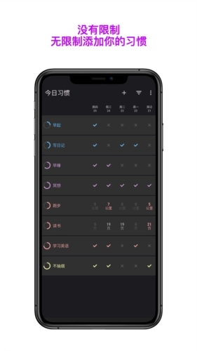 2、后台联网备份,数据永不丢失,用户可以随时随地查看习惯养成历程。