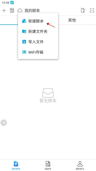点击触动左上角的加号-【新建脚本】。