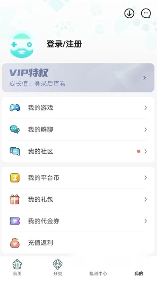 7、进入我的界面,可查看我的游戏、我的群聊、我的社区、我的礼包、我的代金券等等信息,以上就是一元平台的使用方法了。