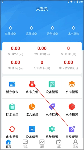 3、水卡充值:输入水卡编号或扫描水卡条形码进行水卡充值