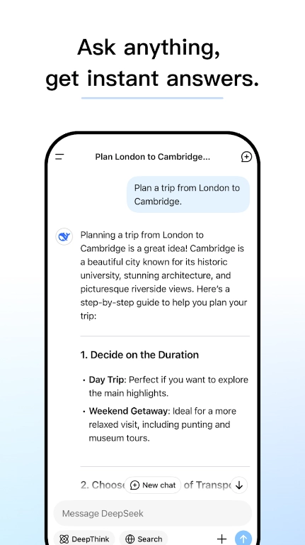 DeepSeek谷歌版是一款由国内自主研发的AI问答软件,完全开源且免费,能为用户带来极为出色的AI问答功能体验,可满足用户的各类需求。该版本为谷歌版本,在使用方面与国内版本存在一些细微差异,但整体功能保持一致。