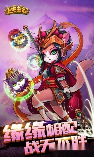 《上吧主公》是一款以三国故事为背景、具有卡通风格的卡牌RPG游戏。在游戏里,你将化身为一位生于乱世且割据一方的英雄,作为统领主公,通过招募形形色色的卡牌萌将,去实现一统江山的霸业。那些你耳熟能详的众多三国名将,纷纷变身为一只只可爱的萌喵。像美髯公关羽、一代枭雄曹操、常胜将军赵云、一骑当千的吕布以及美女貂蝉等,都在其中。招募他们,使之成为自己的力量,带领他们在中原大地上逐鹿争雄。