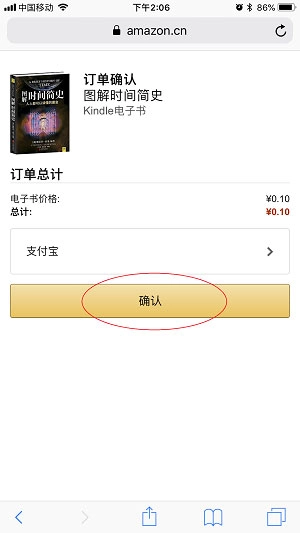 3、购书需打开Safari浏览器访问亚马逊Kindle电子书网站(z.cn/e)购买电子书。为了遵循苹果公司的政策,在iOS App中暂时无法购买Kindle电子书。