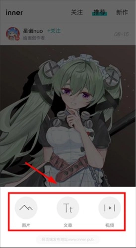 1. 登录inner,在页面上点击【+】来发布作品。