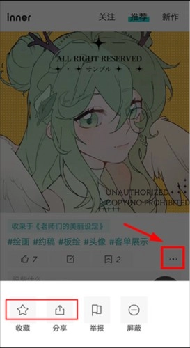 4、你发布的作品或是你喜欢的作品都可以点击页面【…】进行分享或是收藏。