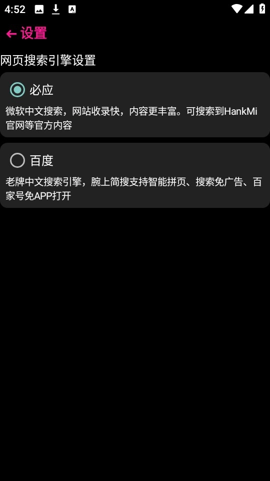 5、最后点击进入设置界面,可以自定义修改网页搜索引擎设置。