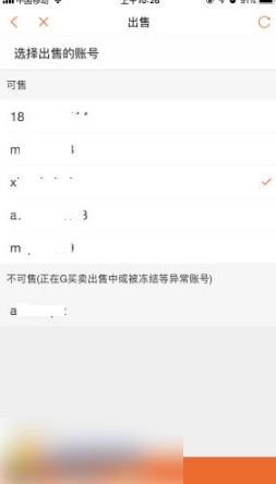 3、选择【账号】后进行短信也验证,验证通过后就会出现你所绑定的所有账号了,选择需要出售的账号点击确定。